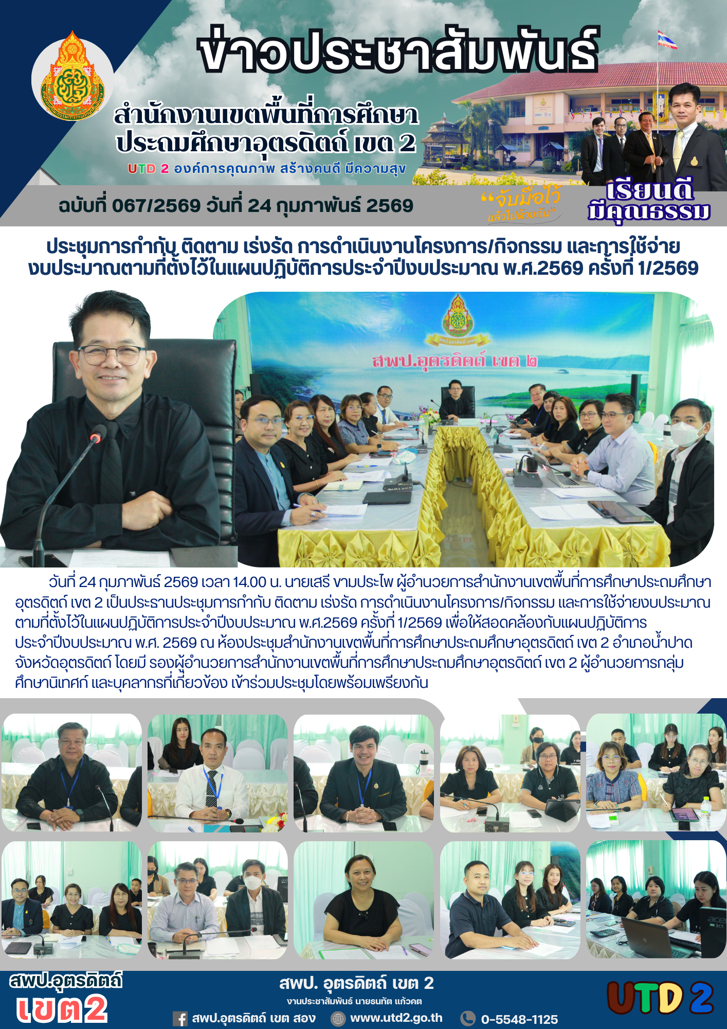 ฉบับที่ 067/2569 ประชุมการกำกับ ติดตาม เร่งรัด การดำเนินงานโครงการ/กิจกรรม และการใช้จ่าย งบประมาณตามที่ตั้งไว้ในแผนปฏิบัติการประจำปีงบประมาณ พ.ศ.2569 ครั้งที่ 1/2569
