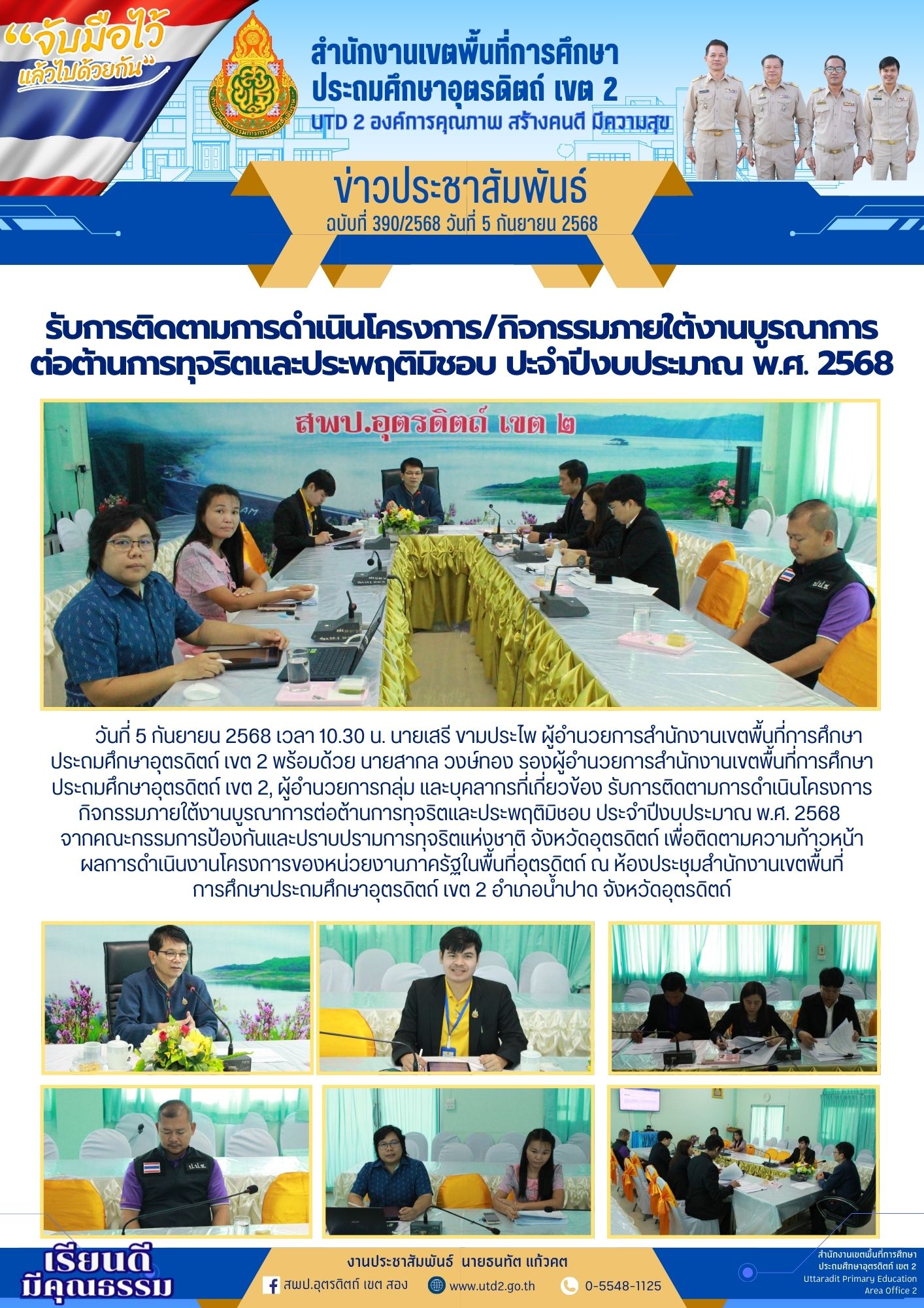 ฉบับที่ 390/2568 รับการติดตามการดำเนินโครงการ/กิจกรรมภายใต้งานบูรณาการต่อต้านการทุจริตและประพฤติมิชอบ ปะจำปีงบประมาณ พ.ศ. 2568