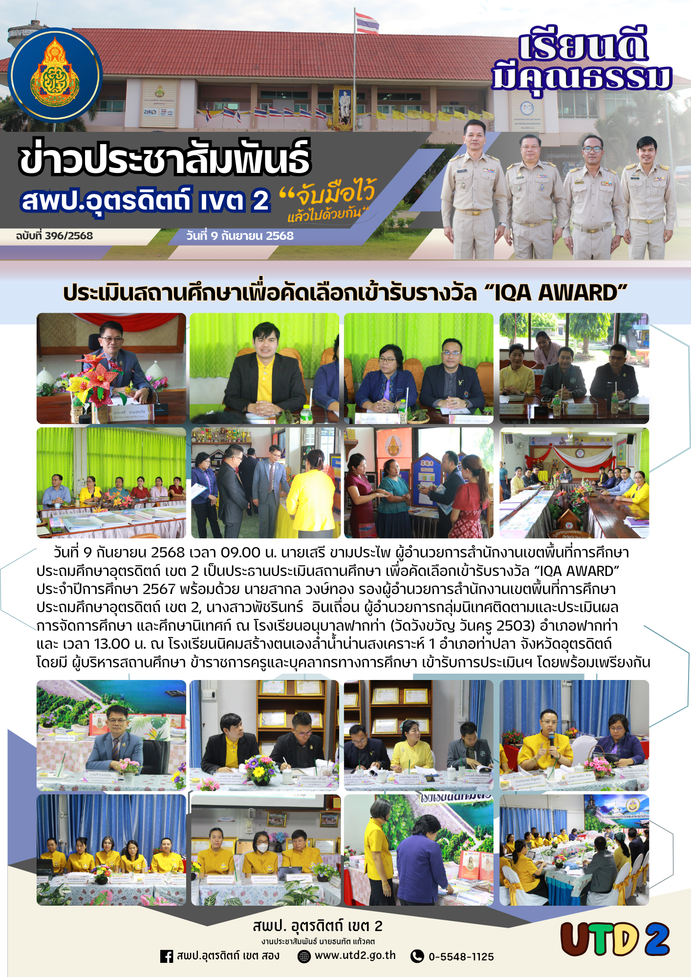 ฉบับที่ 396/2568 ประเมินสถานศึกษาเพื่อคัดเลือกเข้ารับรางวัล “IQA AWARD”