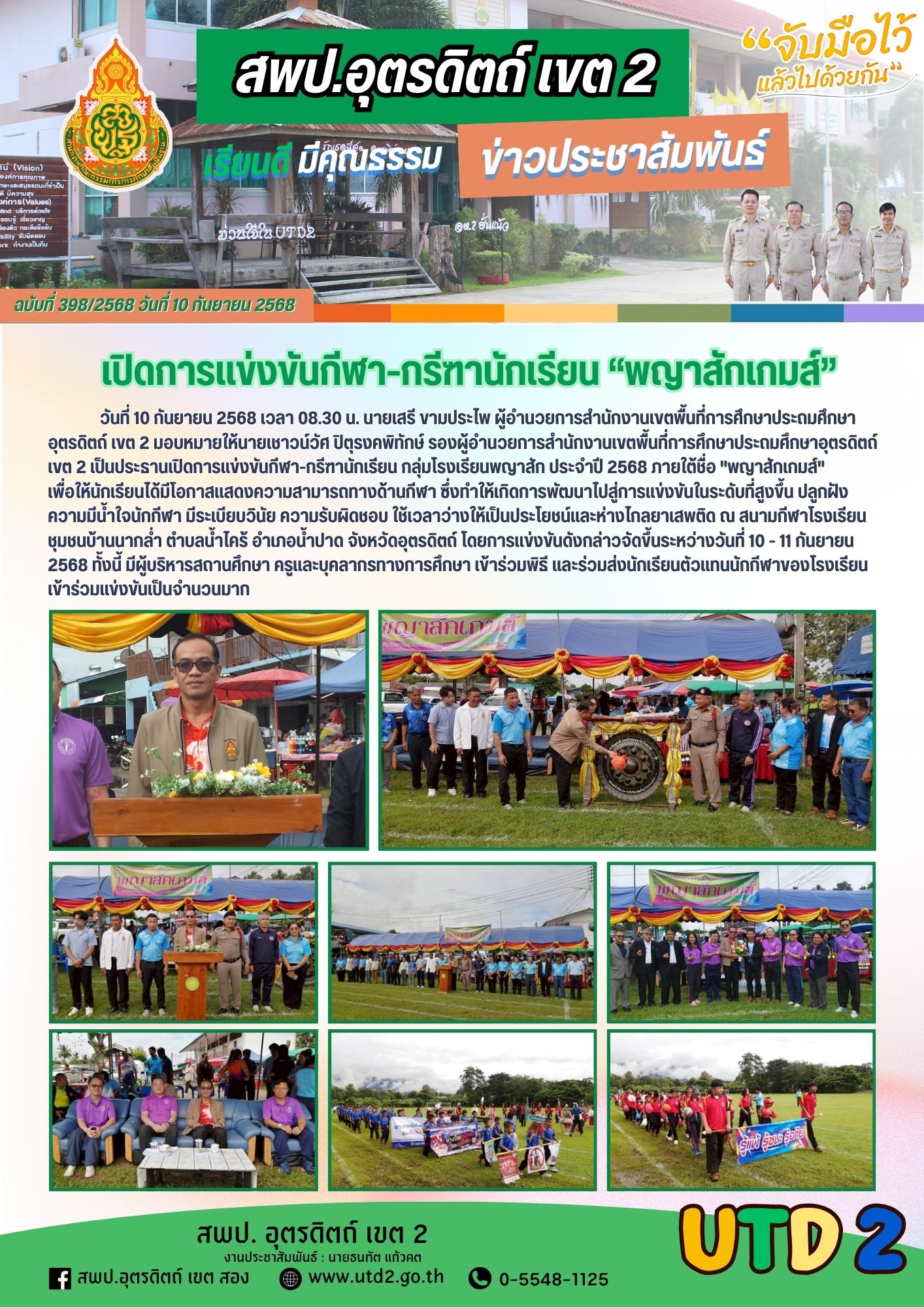 ฉบับที่ 398/2568 เปิดการแข่งขันกีฬา-กรีฑานักเรียน “พญาสักเกมส์”