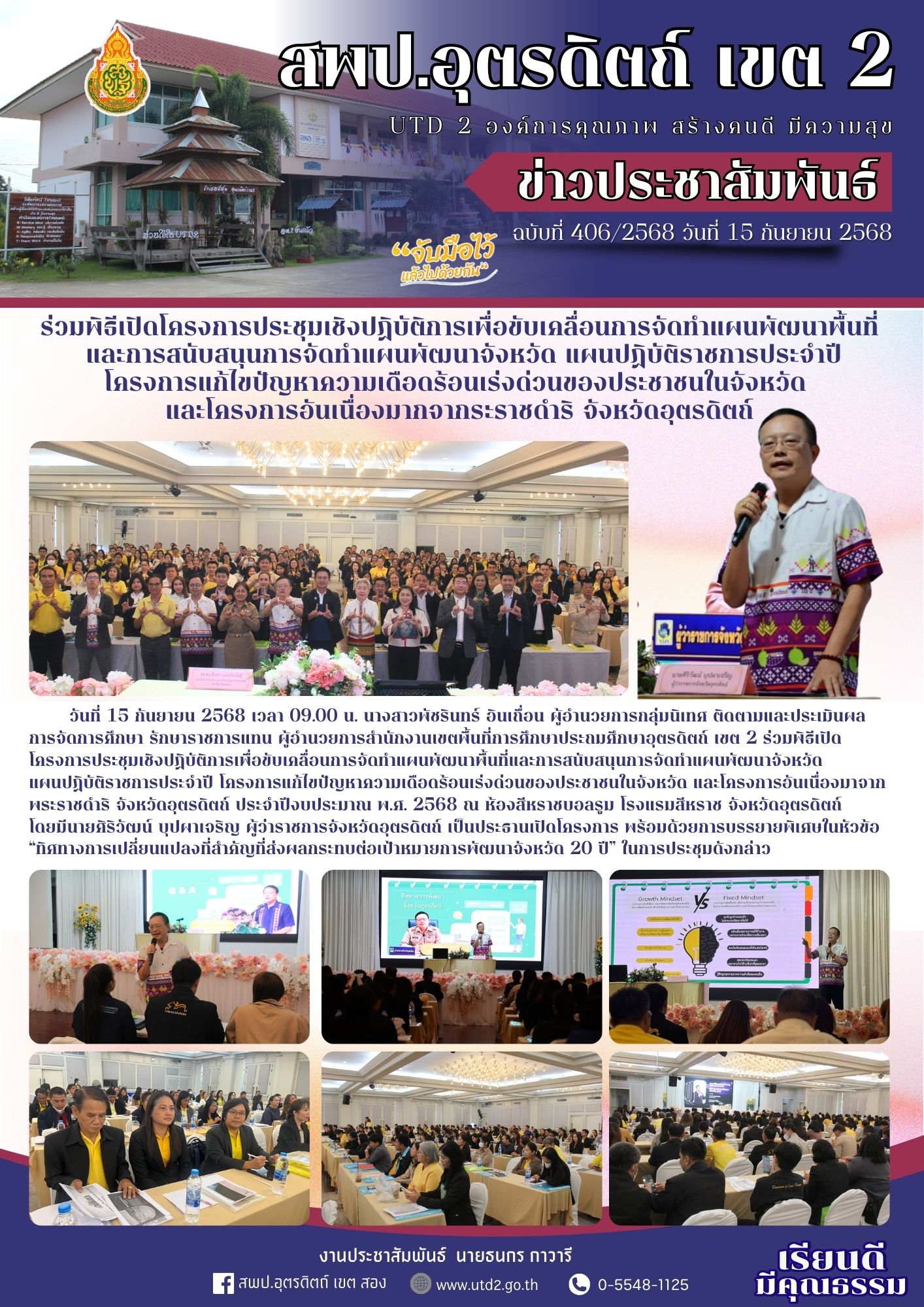 ฉบับที่ 406/2568 ร่วมพิธีเปิดโครงการประชุมเชิงปฏิบัติการเพื่อขับเคลื่อนการจัดทำแผนพัฒนาพื้นที่และการสนับสนุนการจัดทำแผนพัฒนาจังหวัด แผนปฏิบัติราชการประจำปี โครงการแก้ไขปัญหาความเดือดร้อนเร่งด่วนของประชาชนในจังหวัดและโครงการอันเนื่องมากจากระราชดำริ จัง