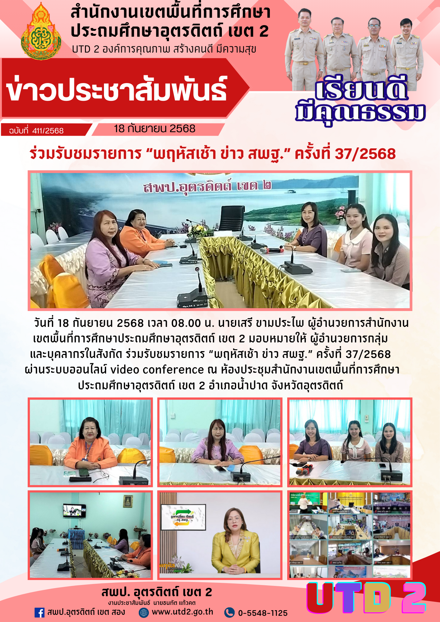 ฉบับที่ 411/2568 ร่วมรับชมรายการ “พฤหัสเช้า ข่าว สพฐ.” ครั้งที่ 37/2568
