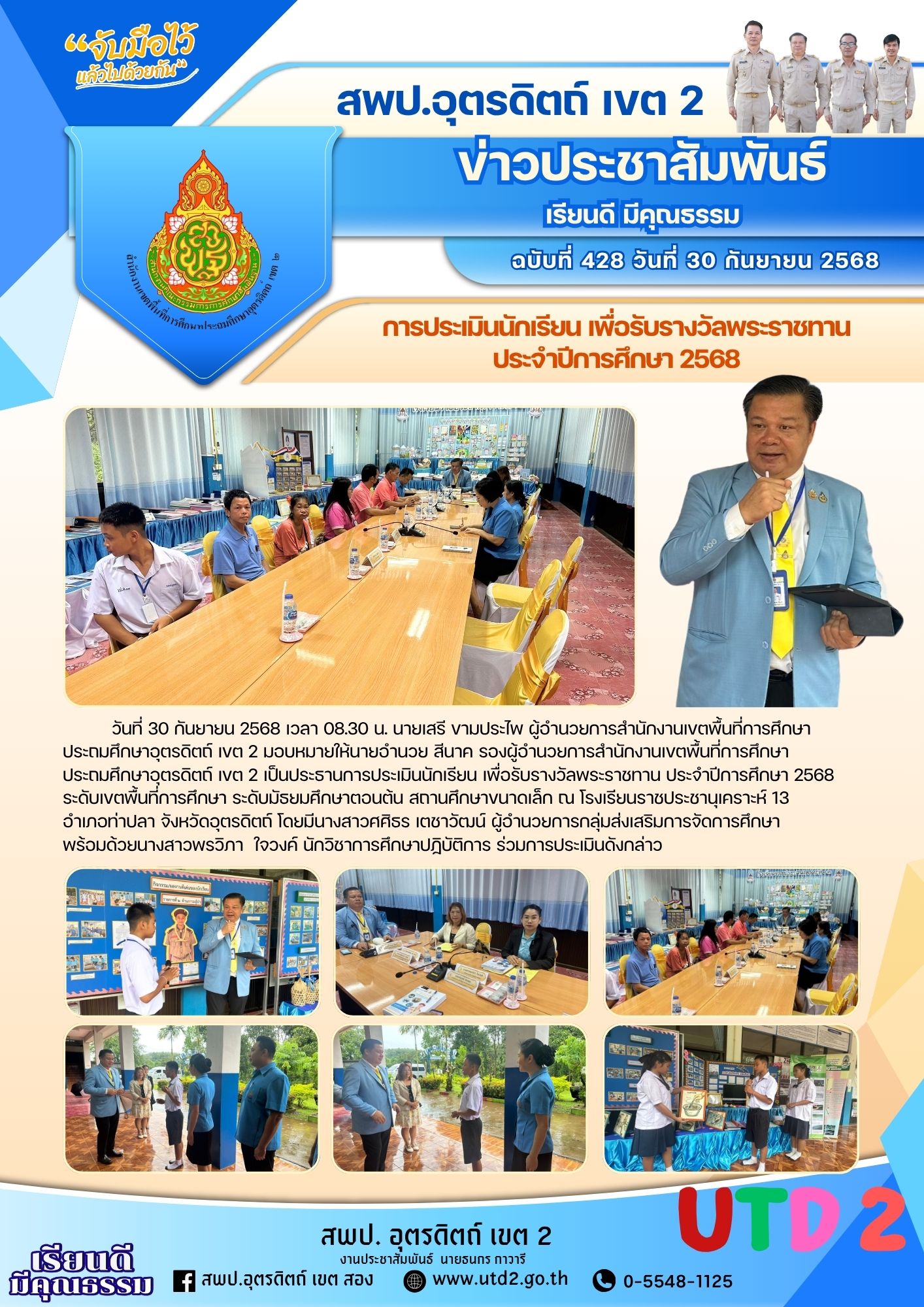ฉบับที่ 428/2568 การประเมินนักเรียนเพื่อรับรางวัลพระราชทาน ประจำปีการศึกษา 2568
