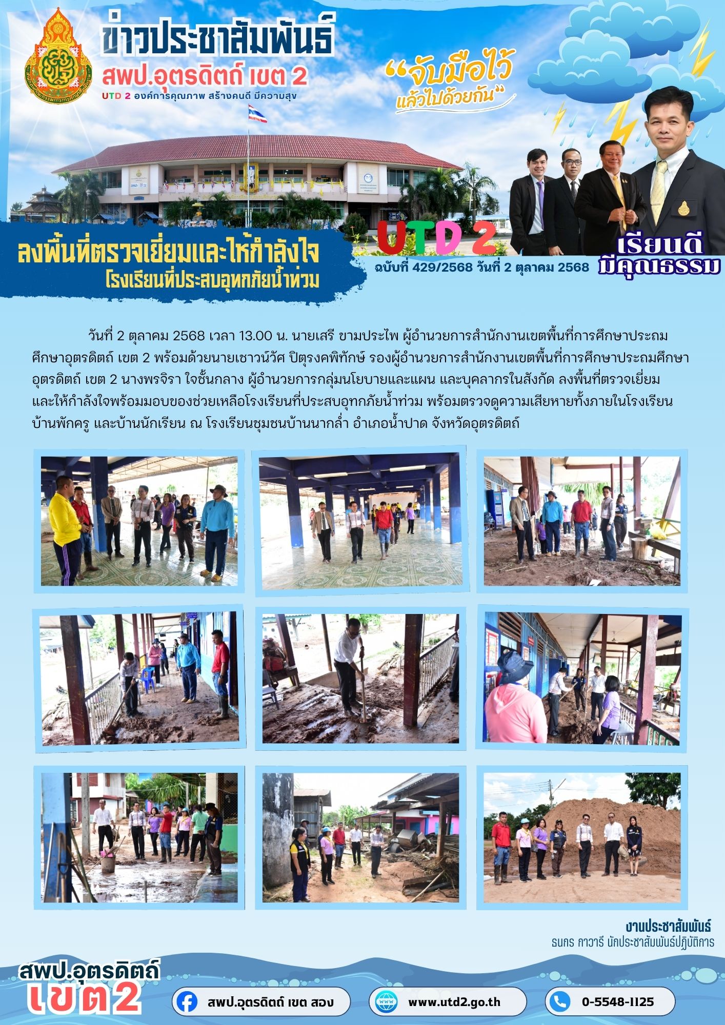 ฉบับที่ 436/2568 ลงพื้นที่ตรวจเยี่ยมและให้กำลังใจพร้อมมอบของช่วยเหลือโรงเรียนที่ประสบอุทกภัยน้ำท่วม