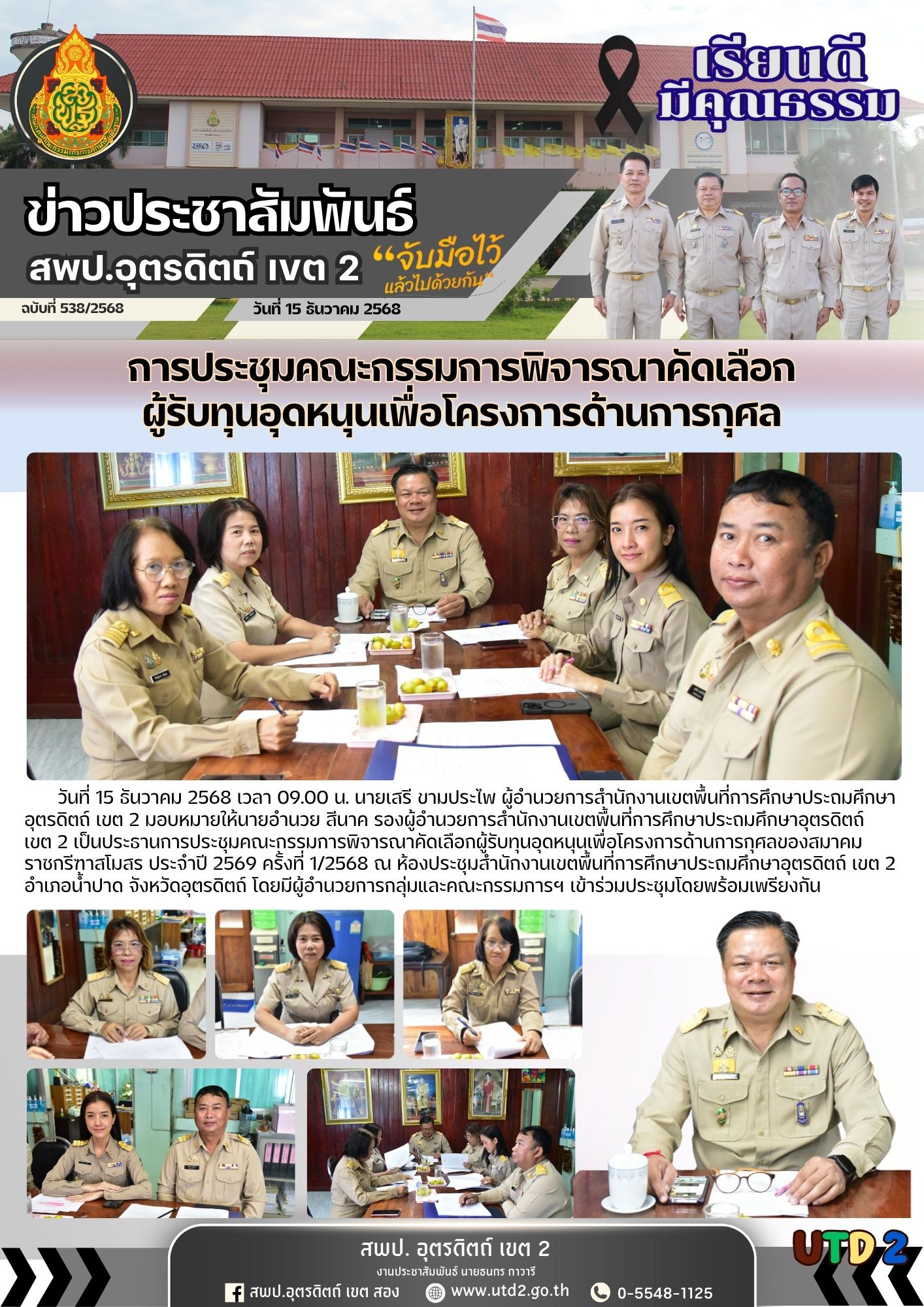 ฉบับที่ 538/2568 การประชุมคณะกรรมการพิจารณาคัดเลือก ผู้รับทุนอุดหนุนเพื่อโครงการด้านการกุศล