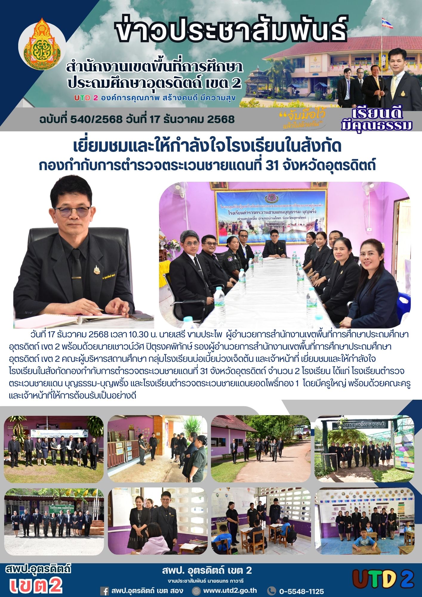 ฉบับที่ 540/2568 เยี่ยมชมและให้กำลังใจโรงเรียนในสังกัด กองกำกับการตำรวจตระเวนชายแดนที่ 31 จังหวัดอุตรดิตถ์