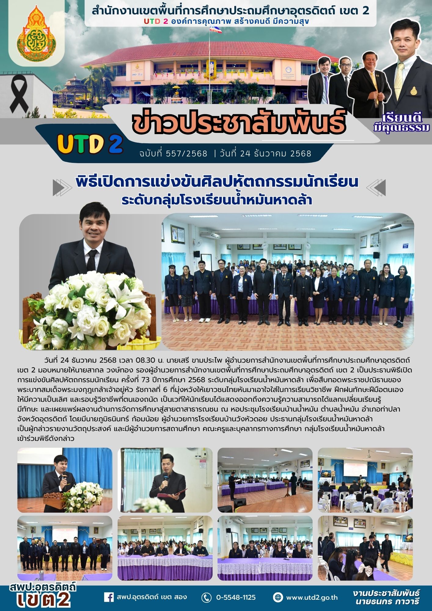ฉบับที่ 557/2568 พิธีเปิดการแข่งขันศิลปหัตถกรรมนักเรียนระดับกลุ่มโรงเรียนน้ำหมันหาดล้า