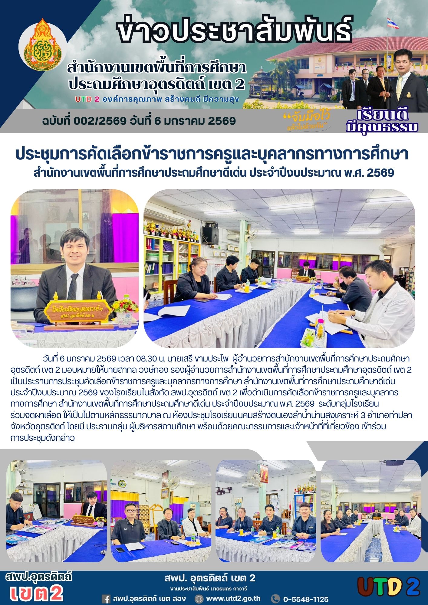 ฉบับที่ 002/2569 ประชุมการคัดเลือกข้าราชการครูและบุคลากรทางการศึกษา สำนักงานเขตพื้นที่การศึกษาประถมศึกษาดีเด่น ประจำปีงบประมาณ พ.ศ. 2569