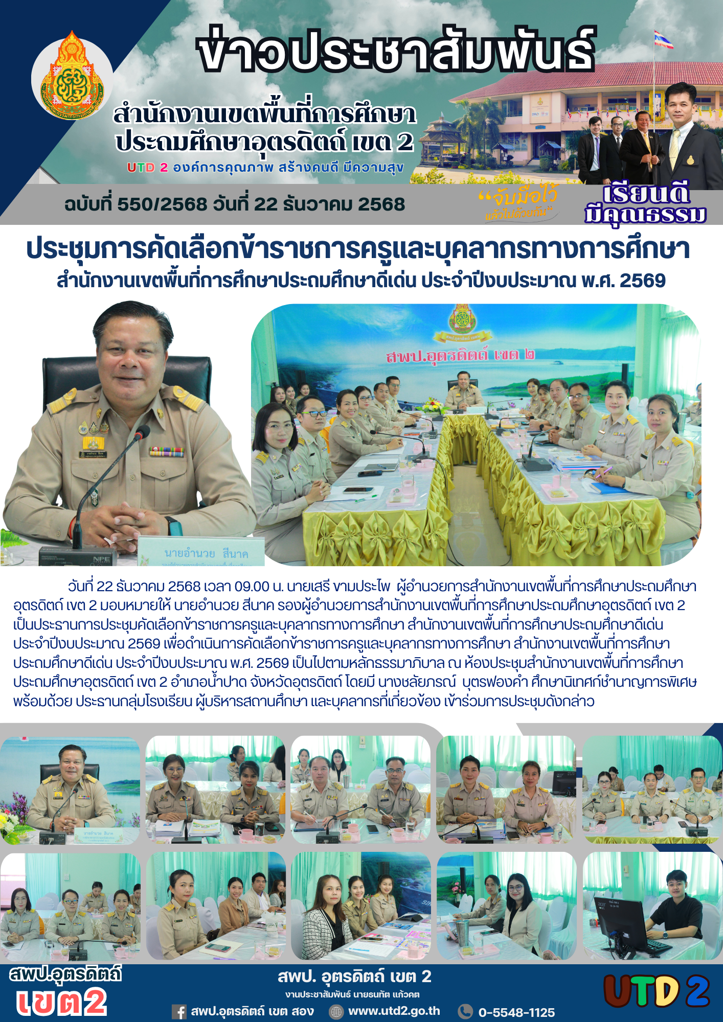 📣ประกาศสำนักงานเขตพื้นที่การศึกษาประถมศึกษาอุตรดิตถ์ เขต 2 เรื่อง มาตรการป้องกันการทุจริตในการคัดเลือกบุคคลเพื่อบรรจุและแต่งตั้งให้ดำรงตำแหน่งศึกษานิเทศก์ สังกัดสำนักงานคณะกรรมการการศึกษาขั้นพื้นฐาน ปี พ.ศ. 2568