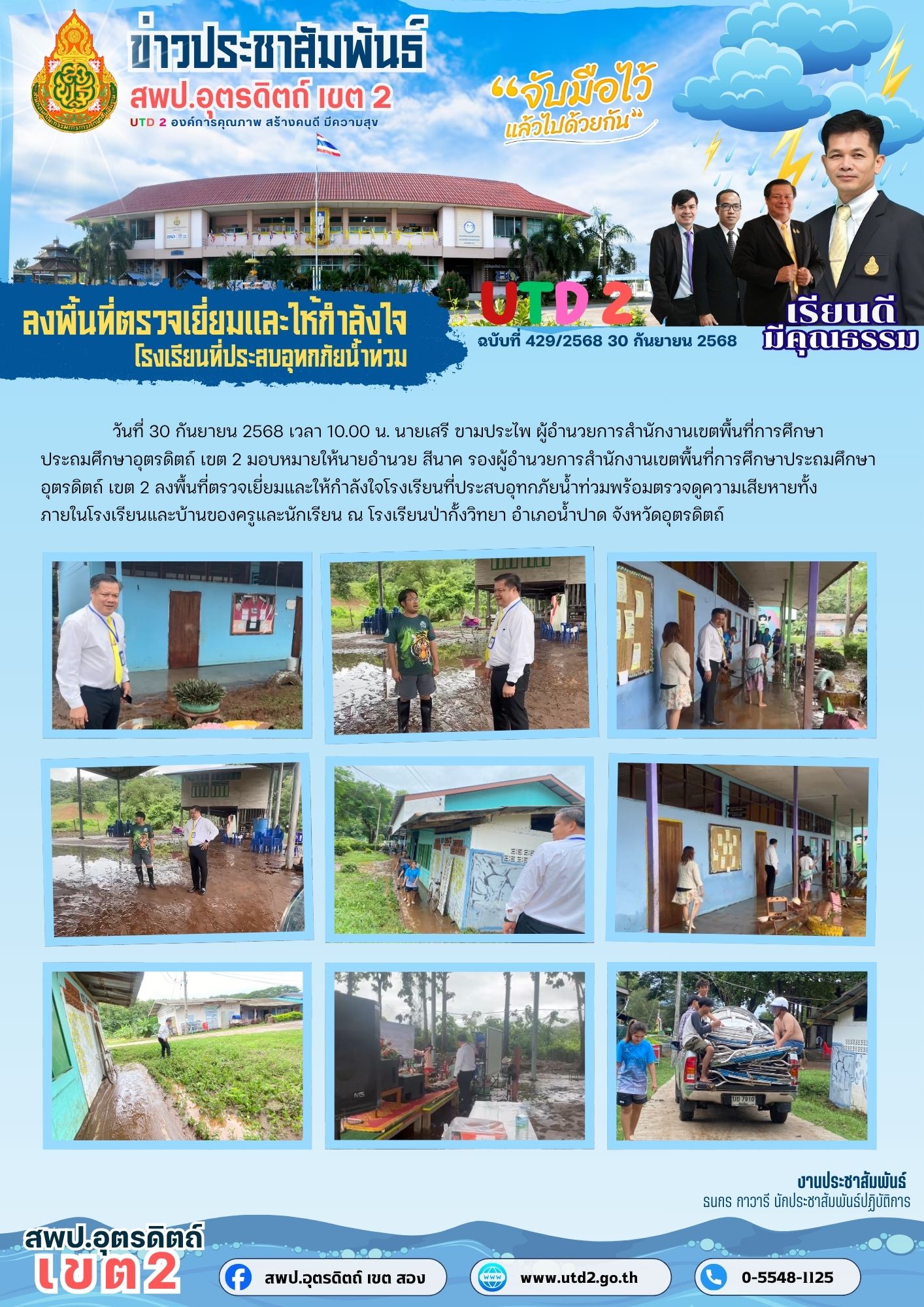 ฉบับที่ 429/2568 ลงพื้นที่ตรวจเยี่ยมและให้กำลังใจโรงเรียนที่ประสบอุทกภัยน้ำท่วม