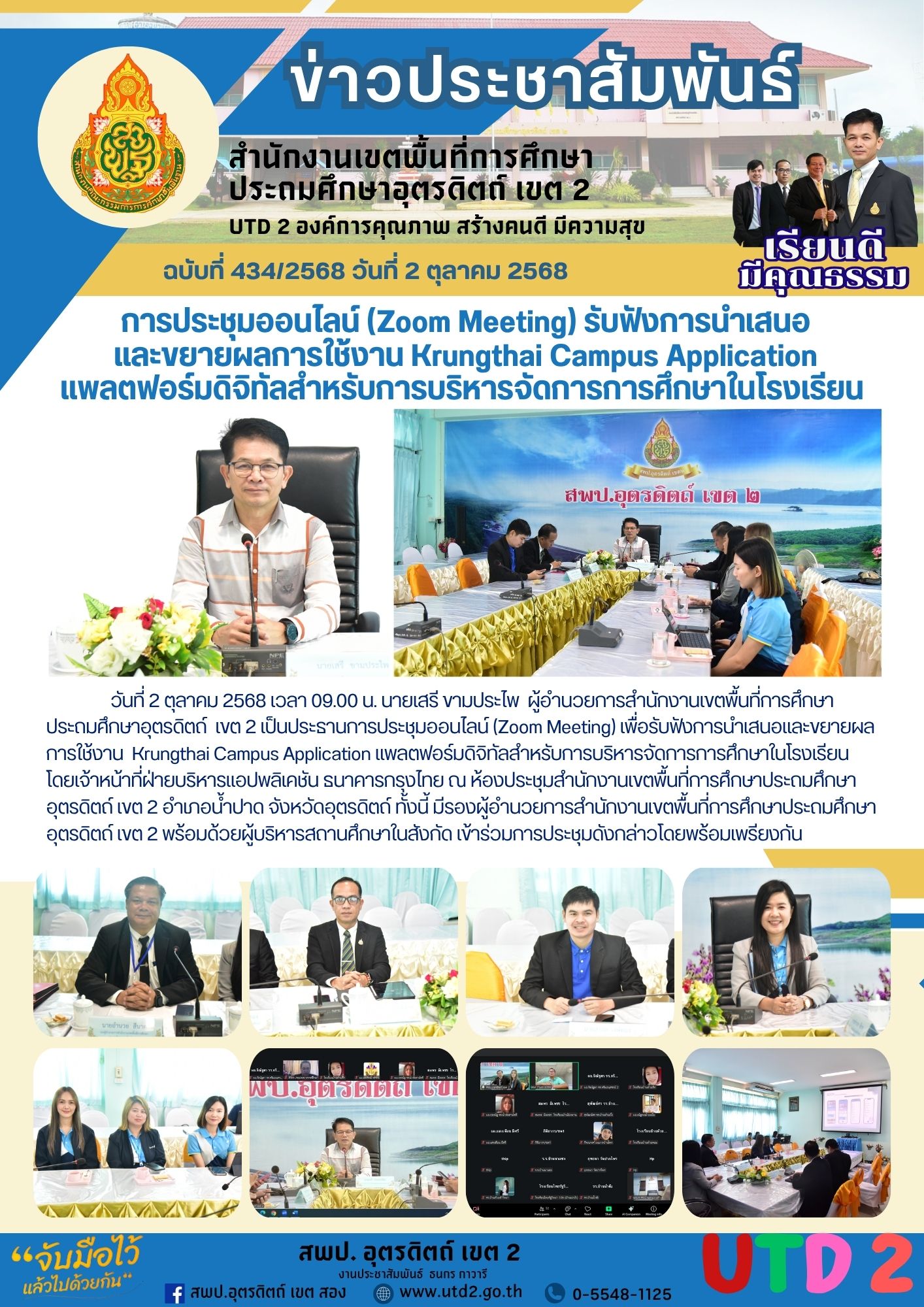ฉบับที่ 434/2568 การประชุมออนไลน์ (Zoom Meeting) เพื่อรับฟังการนำเสนอและขยายผลการใช้งาน Krungthai Campus Application