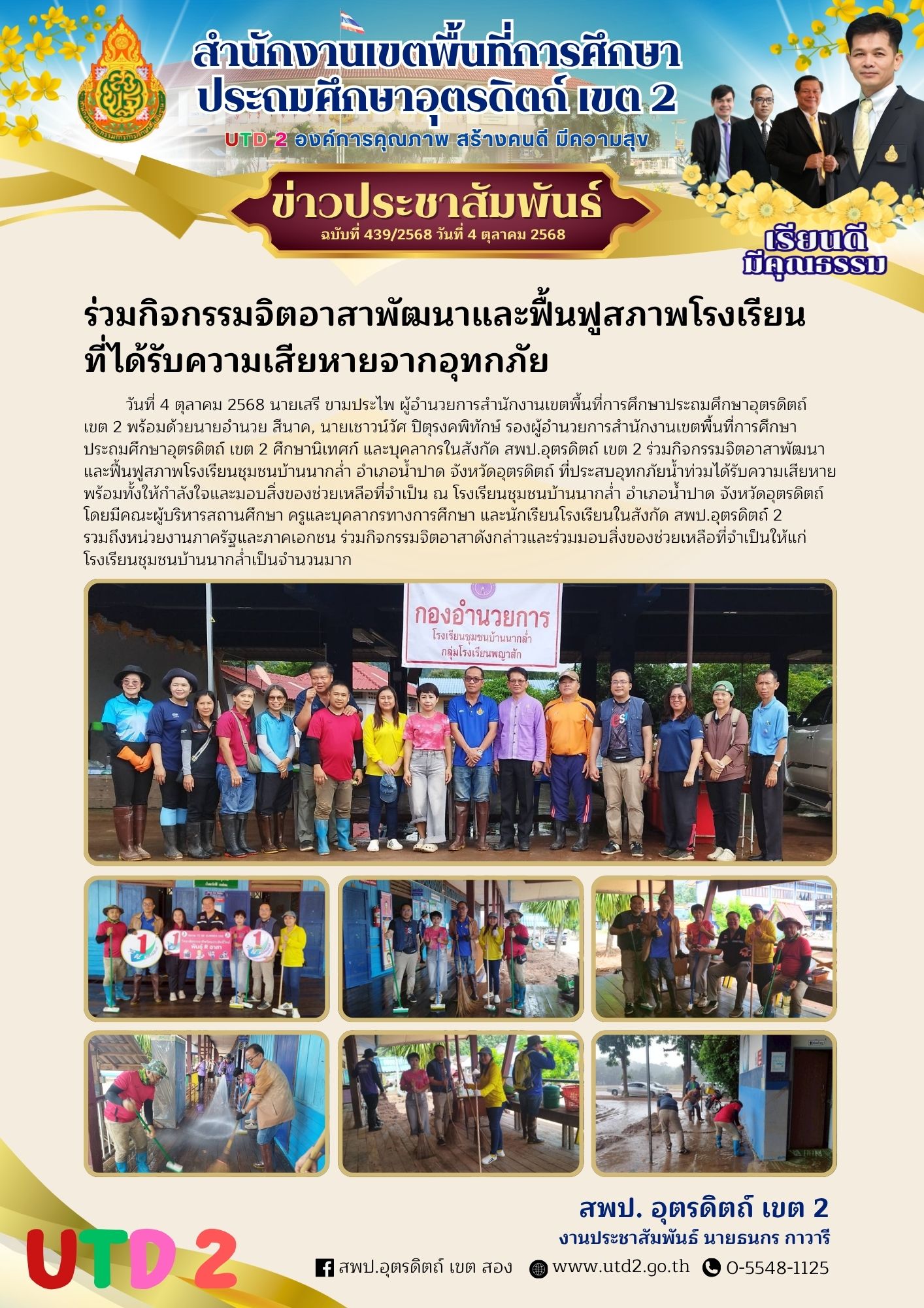 ฉบับที่ 439/2568 ร่วมกิจกรรมจิตอาสาพัฒนาและฟื้นฟูสภาพโรงเรียนที่ได้รับความเสียหายจากอุทกภัย