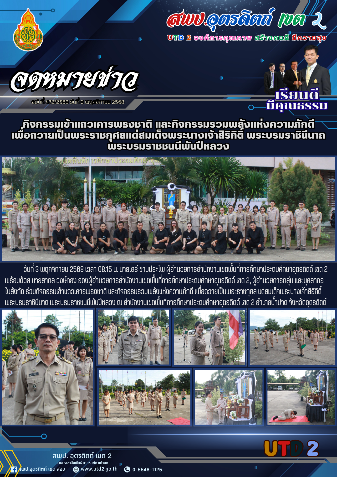 ฉบับที่ 472/2568 กิจกรรมเข้าแถวเคารพธงชาติ และกิจกรรมรวมพลังแห่งความภักดี เพื่อถวายเป็นพระราชกุศลแด่สมเด็จพระนางเจ้าสิริกิติ์ พระบรมราชินีนาถ พระบรมราชชนนีพันปีหลวง